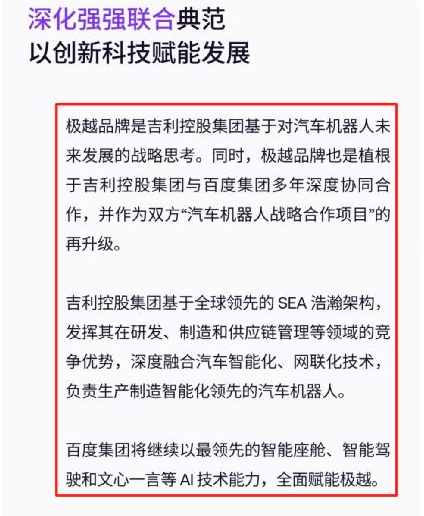 In the declaration, there is another paragraph that says: the ultra-yue automobile products are manufactured by Geely factory and authorized to be exclusively operated by Jidu. In fact, Baidu is in charge of the operation, but Baidu’s attitude is embarrassing.